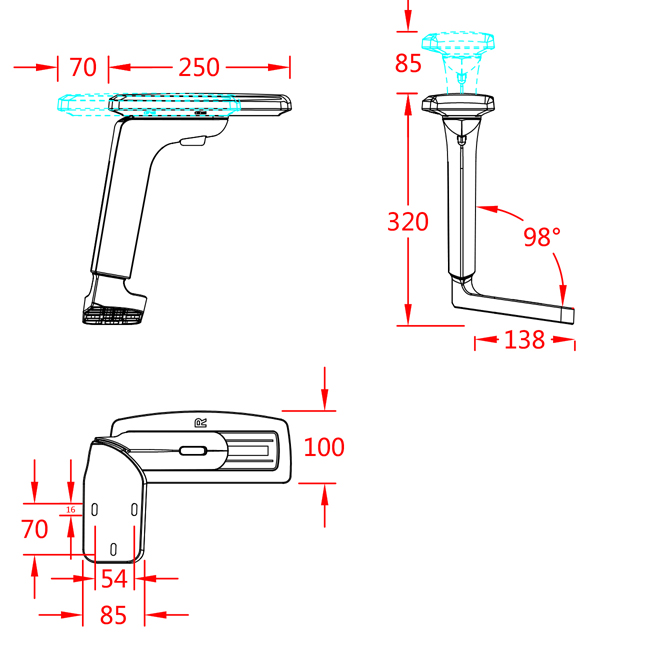• 扶手面可前后移动距离70mm。